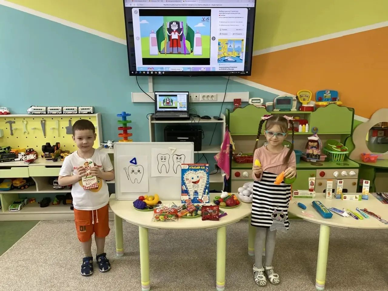 В преддверии международного дня стоматолога в дошкольной группе прошло мероприятие «Бережем зубки с детства», в ходе которого ребята познакомились с профессией стоматолог, узнали, чем занимается врач и насколько он важен в жизни каждого человека. Дети закрепили навыки правильной гигиены полости рта, а также выяснили, что такое кариес, какие продукты полезны для для зубов, а какие вредны. В завершении ребята сделали вывод, что чистые зубки- это красиво, здорово и весело, а регулярные визиты к стоматологу- залог сияющей улыбки на долгие годы.