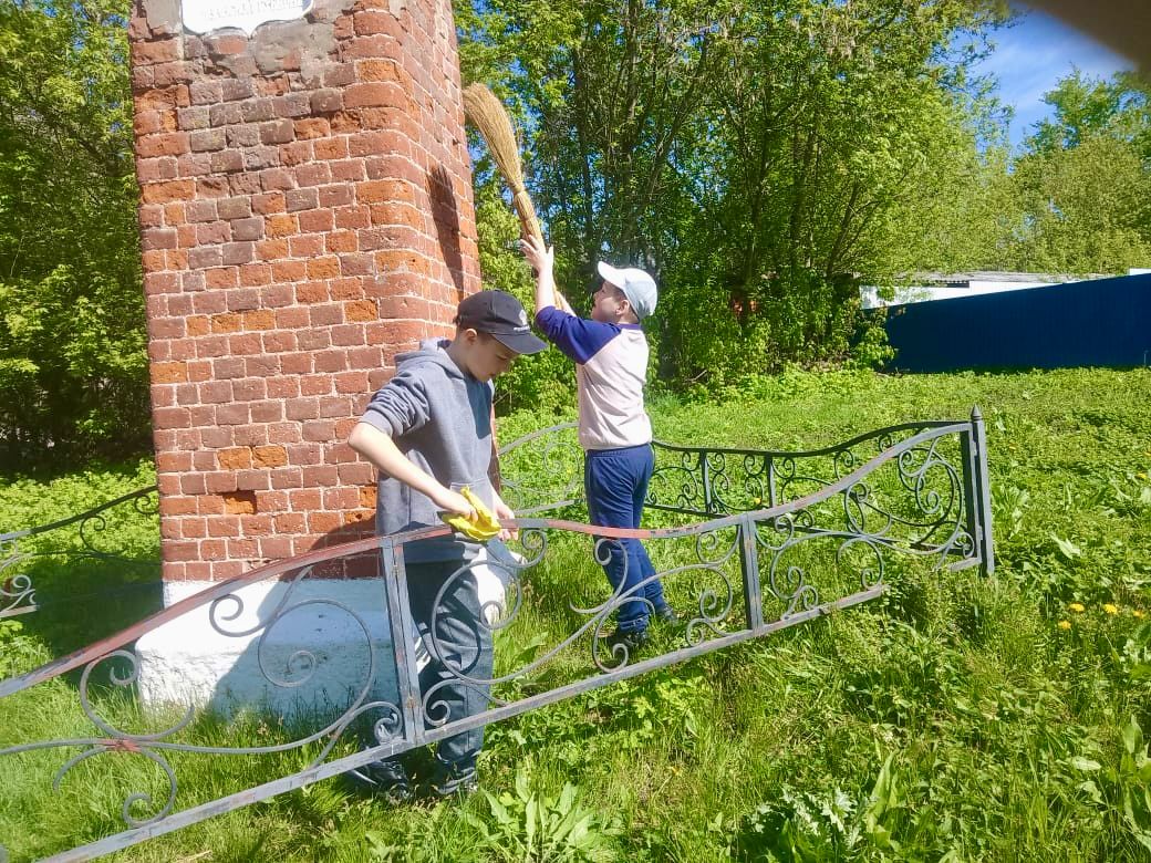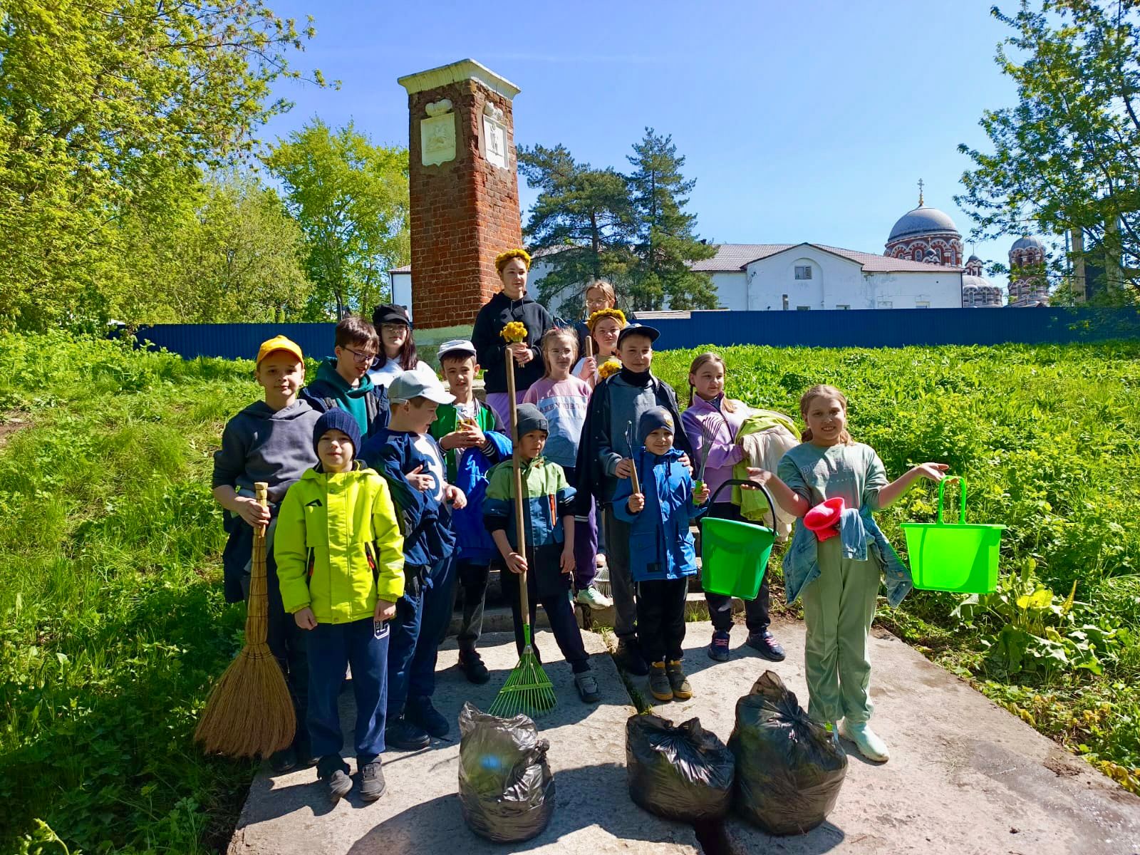 Недалеко от нашего центра находится Межевой столб между Рязанской и Московской губерниями. Дети вместе с воспитателями очистили территорию вокруг памятника от крапивы и одуванчика, подмели и пропололи от травы ступени, ведущие к памятнику. Помыли ограду вокруг памятника. Собрали и вынесли мусор.