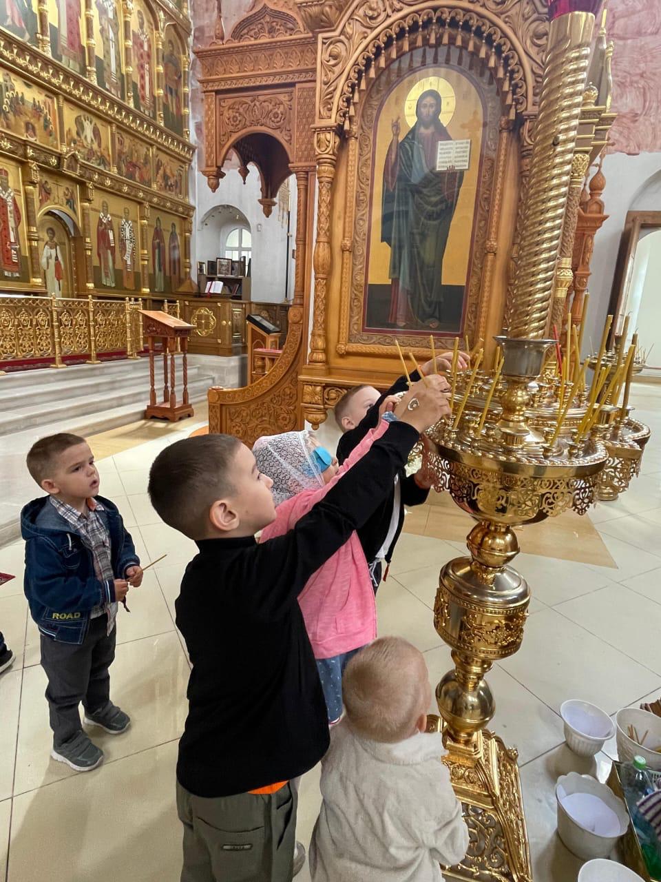 Ребята посетили Богоявленский собор, восхищались архитектурой храмов на территории монастыря: это храм в честь Введения во храм Пресвятой Богородицы и храм в честь преподобного Сергия Радонежского.