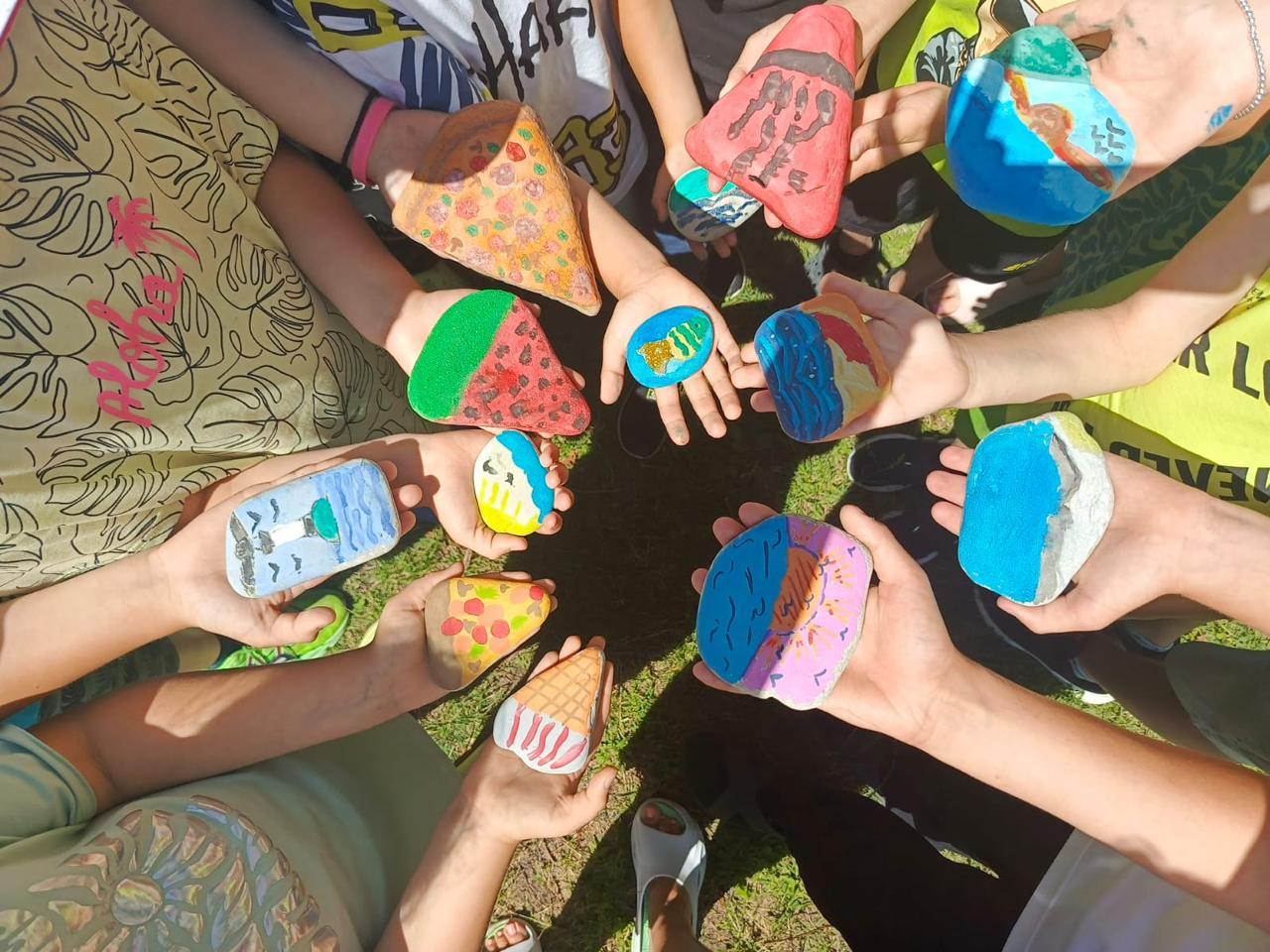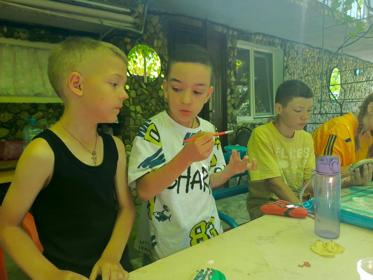Наши ребята находят время для всего: и искупаться в горной реке, и почитать, и половить рыбку на самодельную удочку, и раскрасить на память южные камни, и даже поучаствовать в мероприятиях лагеря!