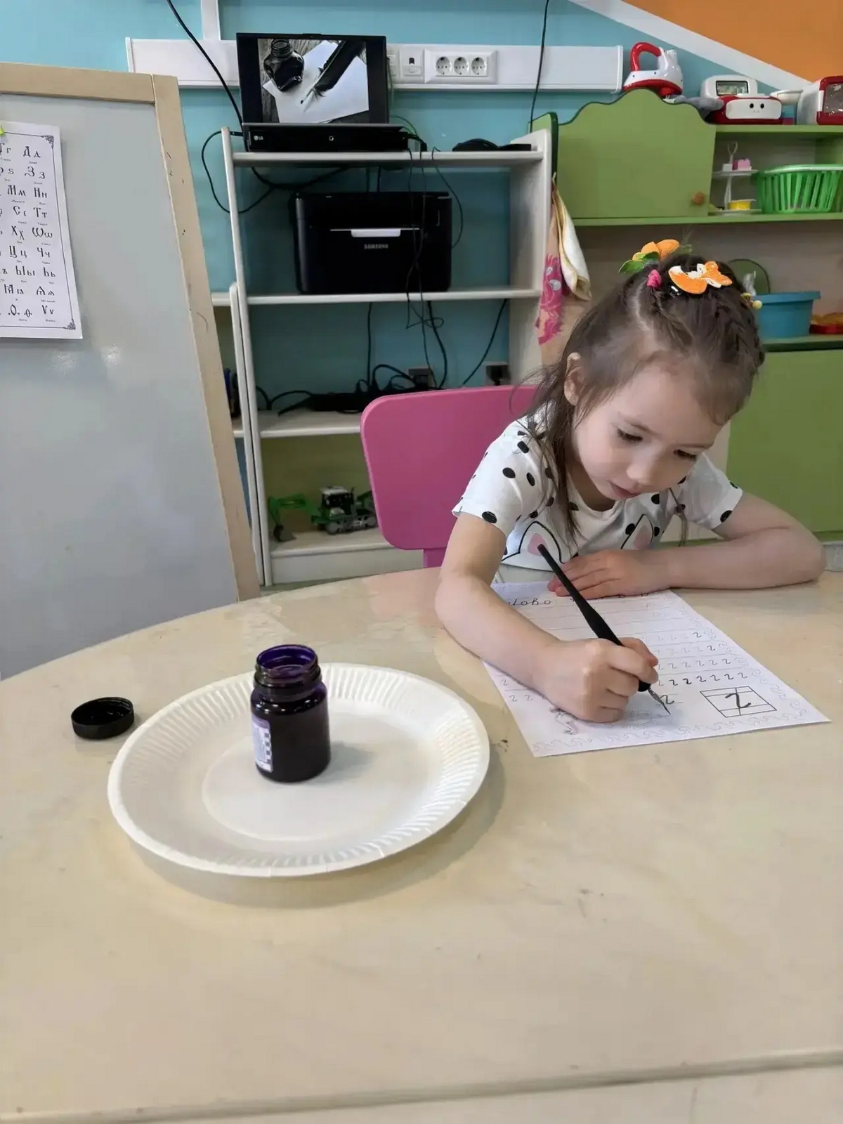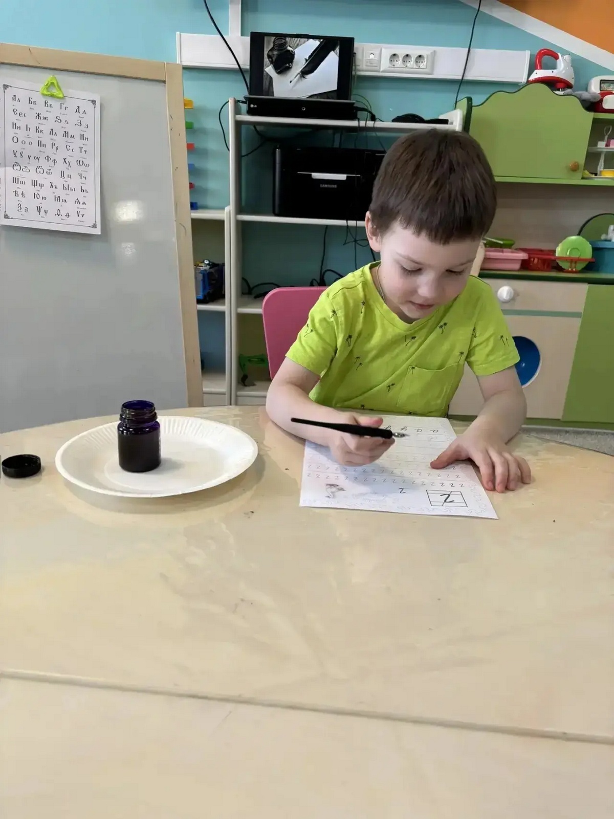 Потом попробовали писать настоящими перьями и чернилами, почувствовав себя писцами Древней Руси.