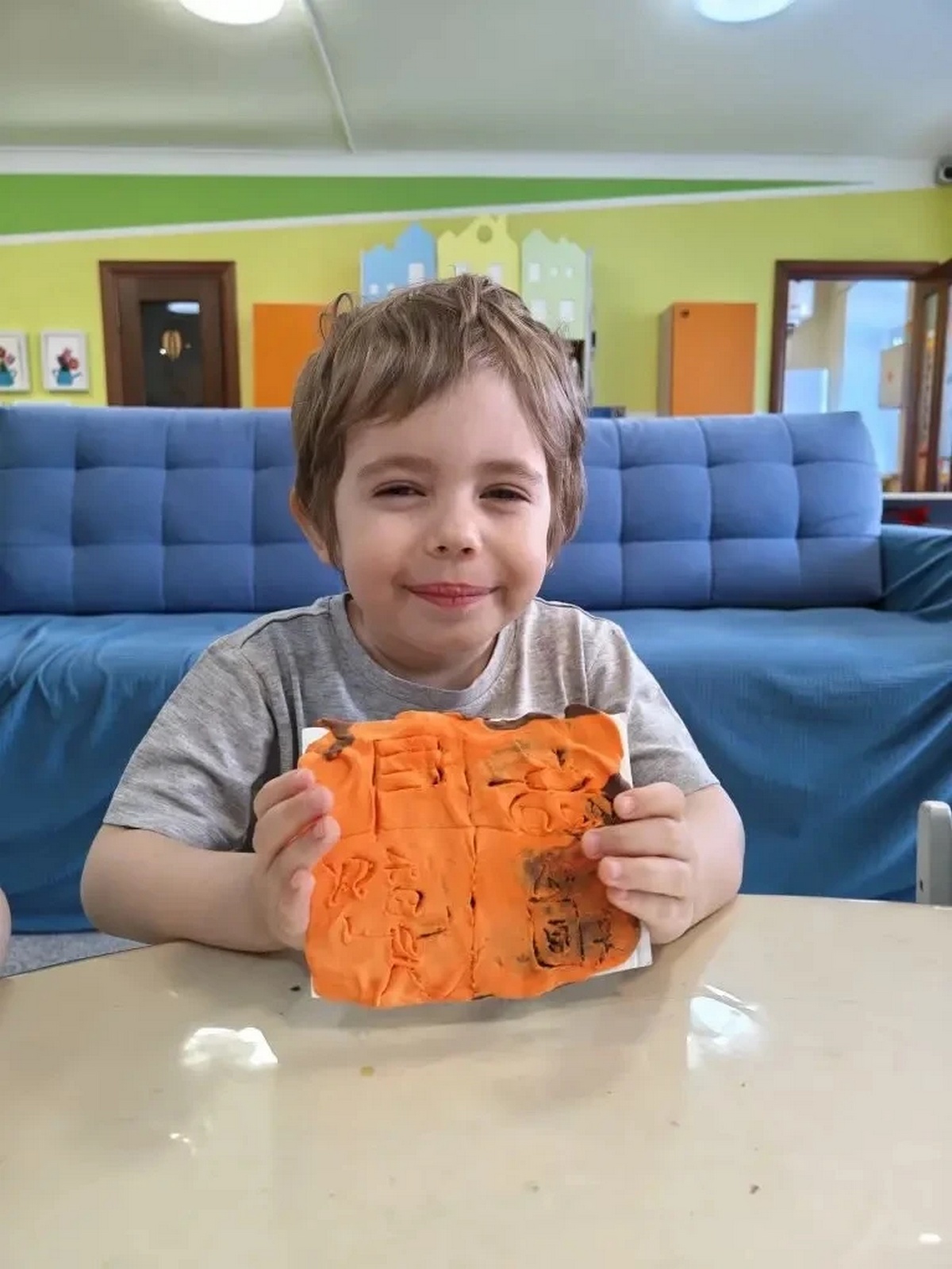 Сначала были тяжелые глиняные таблички — и малыши попробовали сами выцарапать на них буквы.