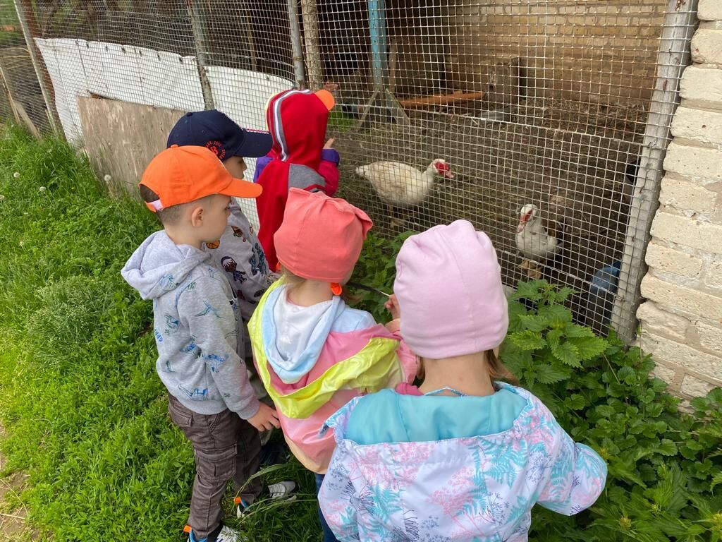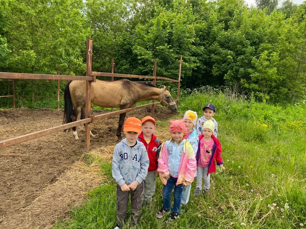 На территории пансионата расположены конюшни. Ухоженные лошади были рады нам не меньше, чем мы им, и с большим удовольствием позировали. Кроме лошадок, малыши встретили индоуток, голубей и кур.