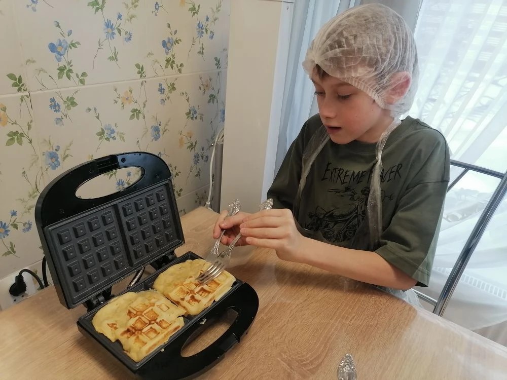 И вот он, кульминационный момент – дегустация! Теплые, хрустящие снаружи и нежные внутри, венские вафли таяли во рту, оставляя после себя сладкое послевкусие. Улыбки на лицах детей – лучшая награда за их старания. Мы гордимся тем, как наши маленькие поварята осваивают новые кулинарные шедевры, превращая кухню в место для творчества и экспериментов. До новых вкусных открытий!