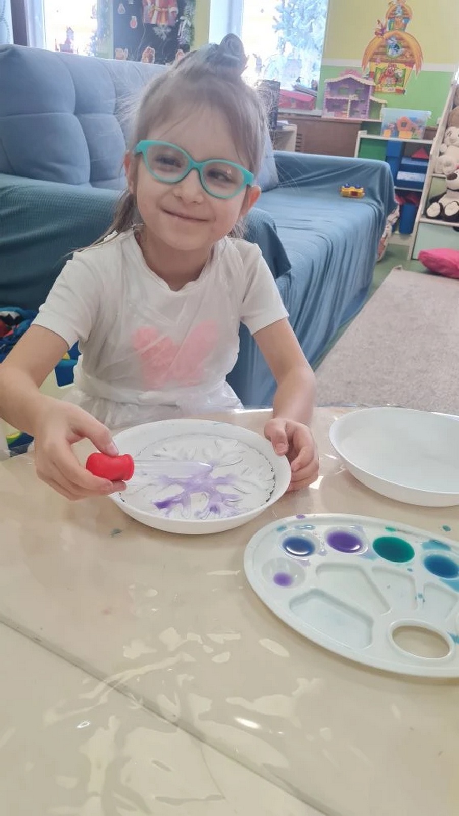 Практической частью стало создание собственной «морозной» снежинки с помощью нетрадиционной техники: рисование цветными красками (акварель, гуашь) по насыпанной на клей соли. В результате у каждого получилась объемная, сверкающая зимняя картина с уникальным кристаллическим узором.