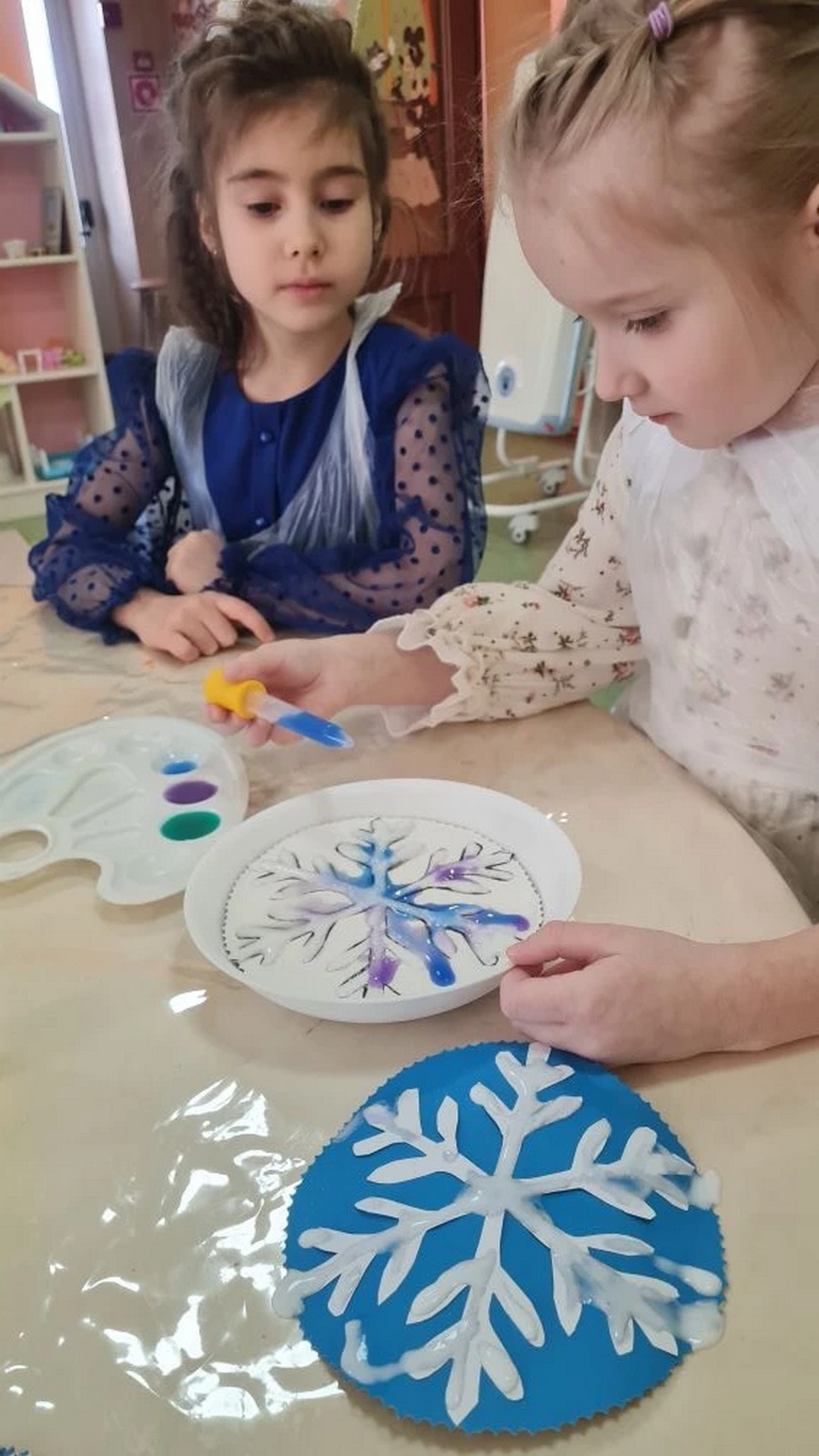 В дни волшебных Крещенских морозов для ребят из дошкольной группы была проведена творческая мастерская "Крещенские морозы".