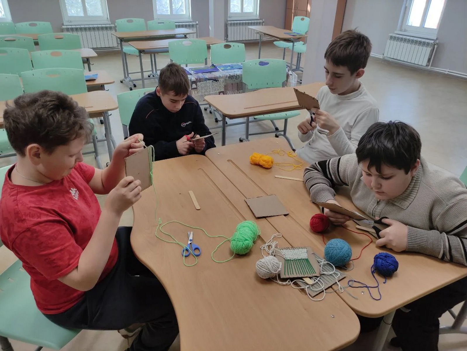 Старшие ребята создавали уют своими руками — в нашей мастерской теперь красуются маленькие шерстяные коврики, в каждый узелок которых вложено детское старание и тепло.