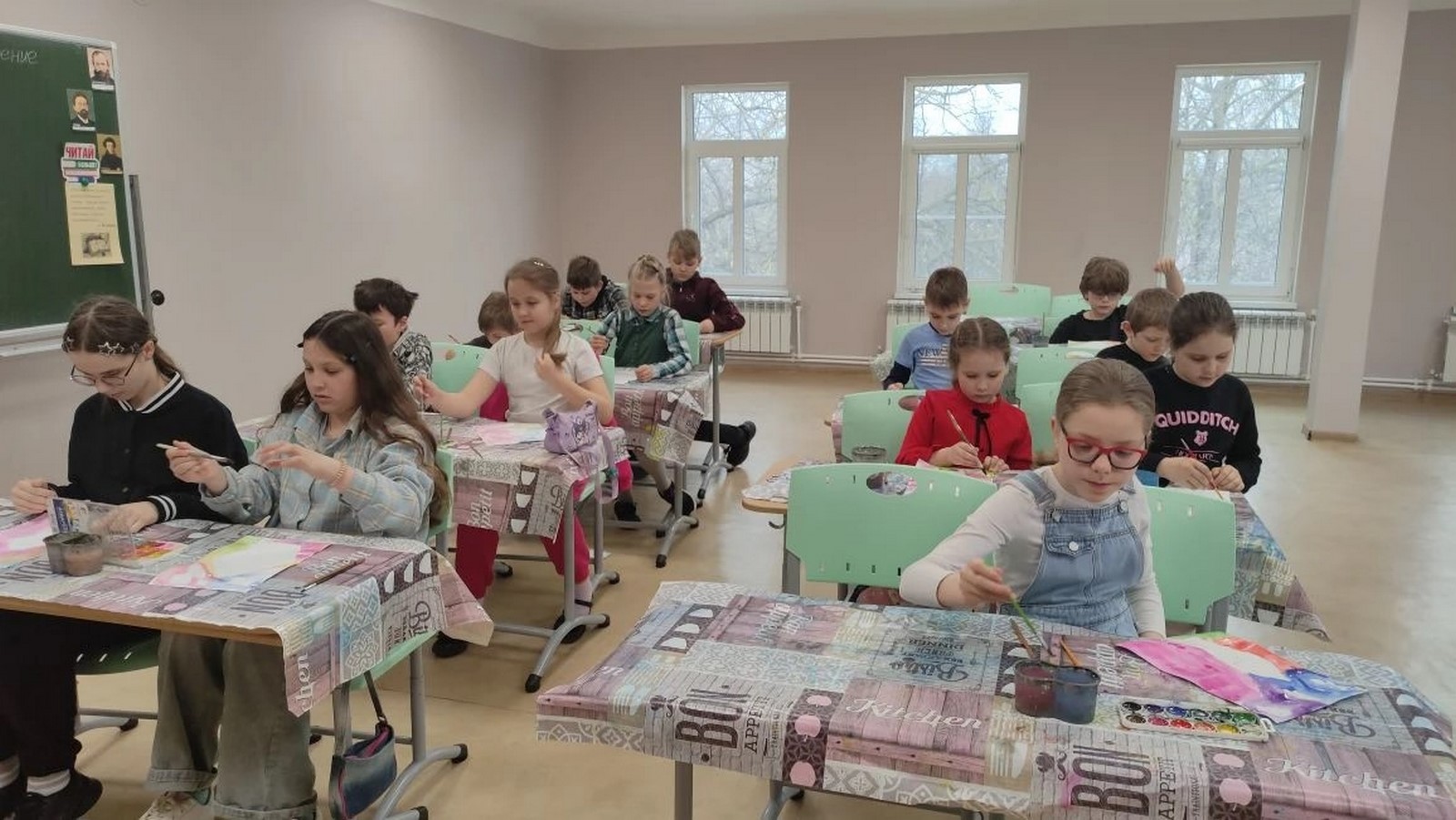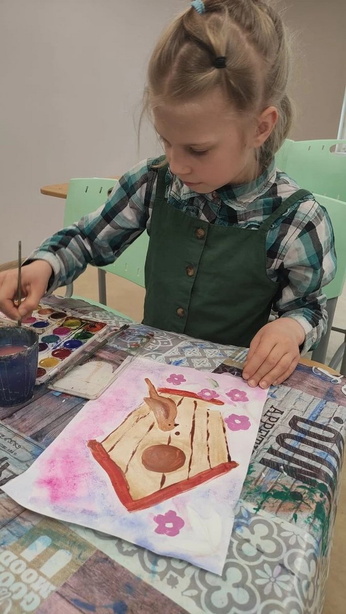 В творческой мастерской младшие дети рисовали скворечники с птицами — яркие и по-настоящему весенние работы.
